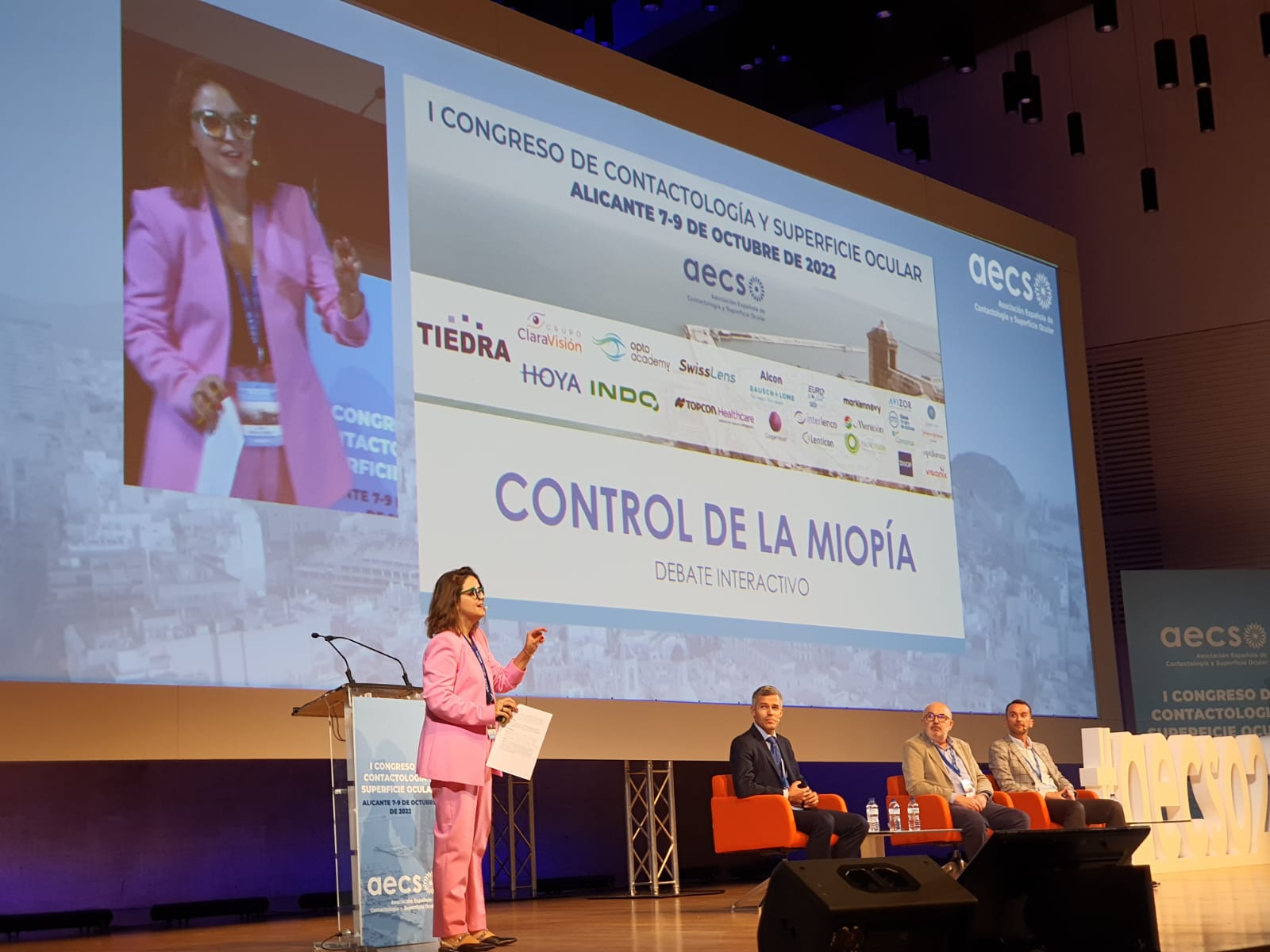 A continuación, la doctora Alba Martín participó en la mesa redonda de control de miopía, junto a José Sánchez y a Elena García Rubio, exponiendo diferentes casos sobre la aplicación de la ortoqueratología, lentes de contacto blandas de desenfoque periférico o lentes oftálmicas, y debatiendo sobre el método de elección para cada caso.