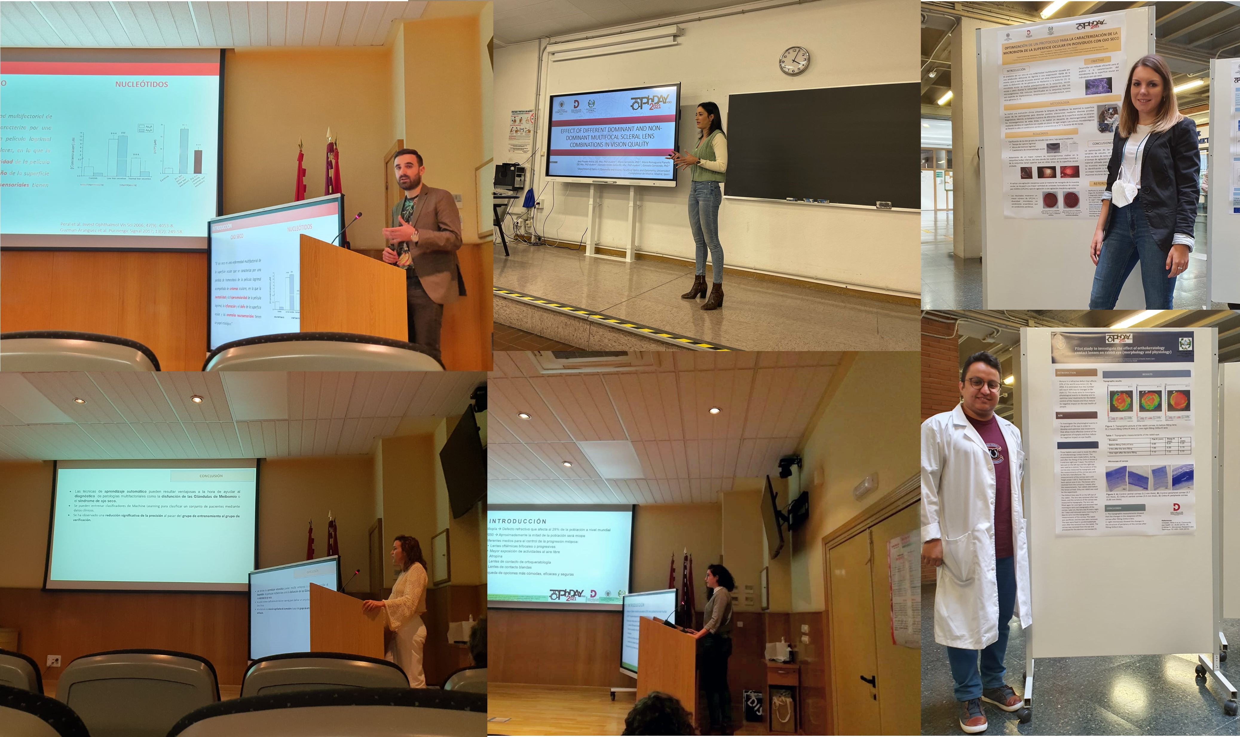 A mediados de mayo, las investigadoras predoctorales Elena Fernández y Julia Bodas, participaron en un concurso promovido por la Escuela de Doctorado de la Universidad Complutense de Madrid (EDUCM) llamado "Tesis en 3 minutos", en el cual las doctorandas resumieron sus tesis doctorales en un tiempo muy ajustado. La tesis de Elena Fernández se enmarca en la disfunción de las glándulas de Meibomio y su evaluación mediante un nuevo sistema de detección. Por otro lado, en la tesis de Julia Bodas se evalúan y caracterizan diferentes lentes de contacto blandas para el control de la miopía.